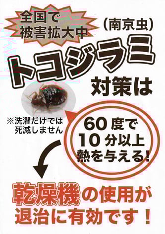 当店の乾燥機で20~30分乾燥することでトコジラミもダニも死滅します。