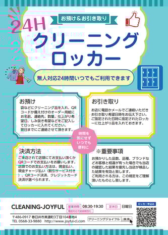 24時間いつでもロッカーを利用してクリーニング品のお預けとお引き取りが出来ます
